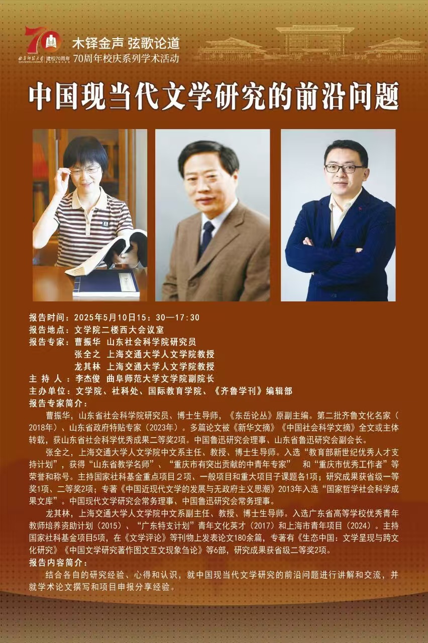 上一条:70周年校庆系列学术报告|郭沫若三次人生转型的启示 下一条:70周年校庆系列学术报告|文艺学研究的前沿问题