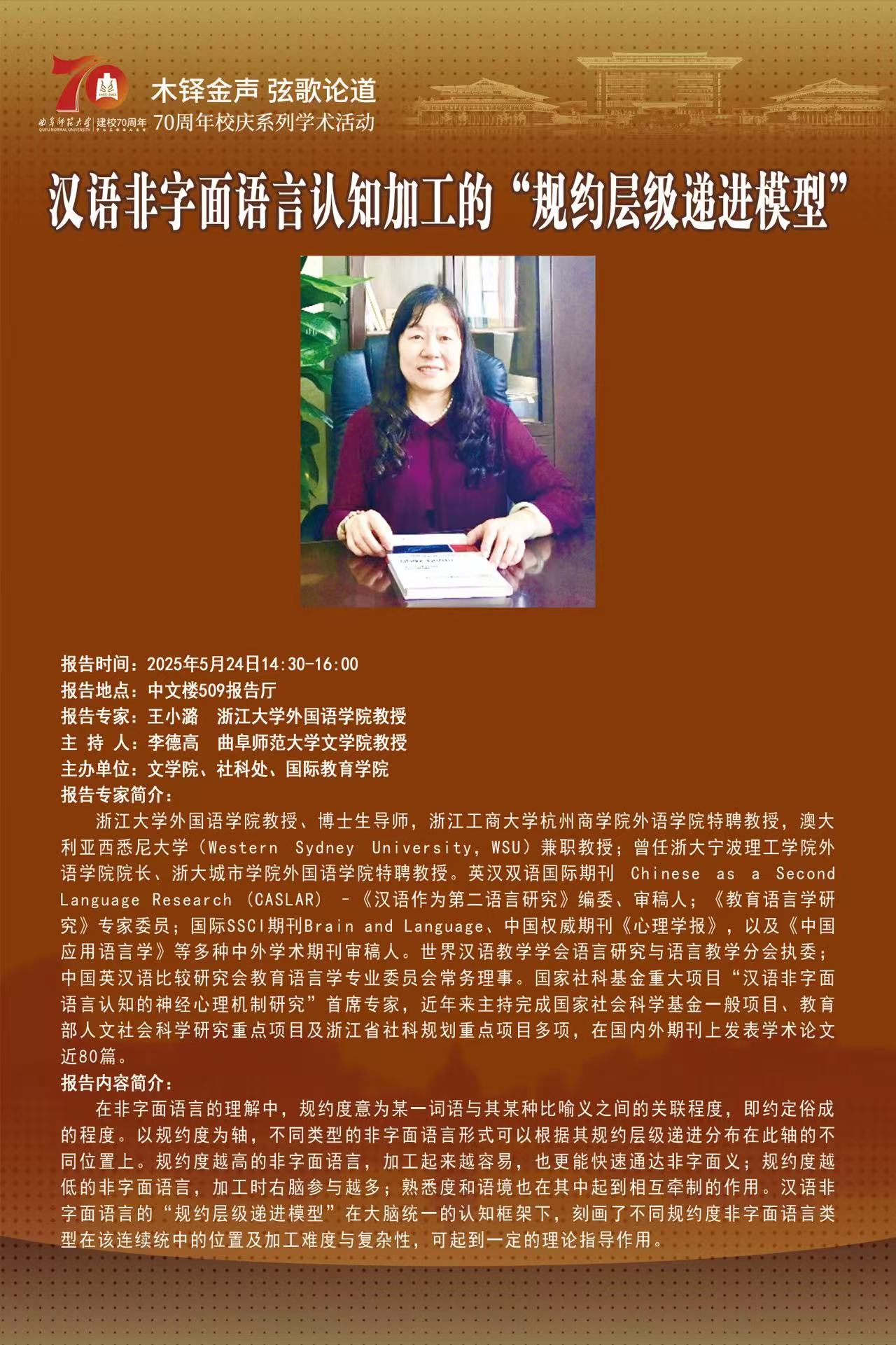 上一条:70周年校庆系列学术报告|离经辨志非易易:《后汉书·礼... 下一条:70周年校庆系列学术报告|基于眼动追踪技术的语言加工研...