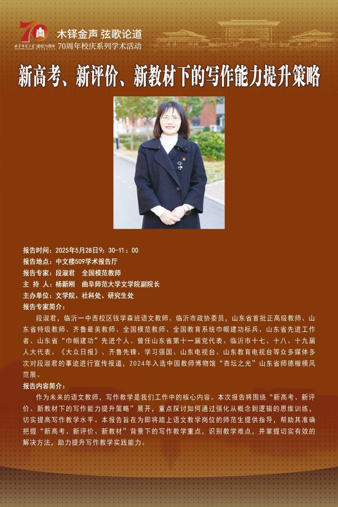 上一条:70周年校庆系列学术报告|新评价视野下的群文阅读理念与... 下一条:70周年校庆系列学术报告|文献集群与地方转向:《龙眠风...