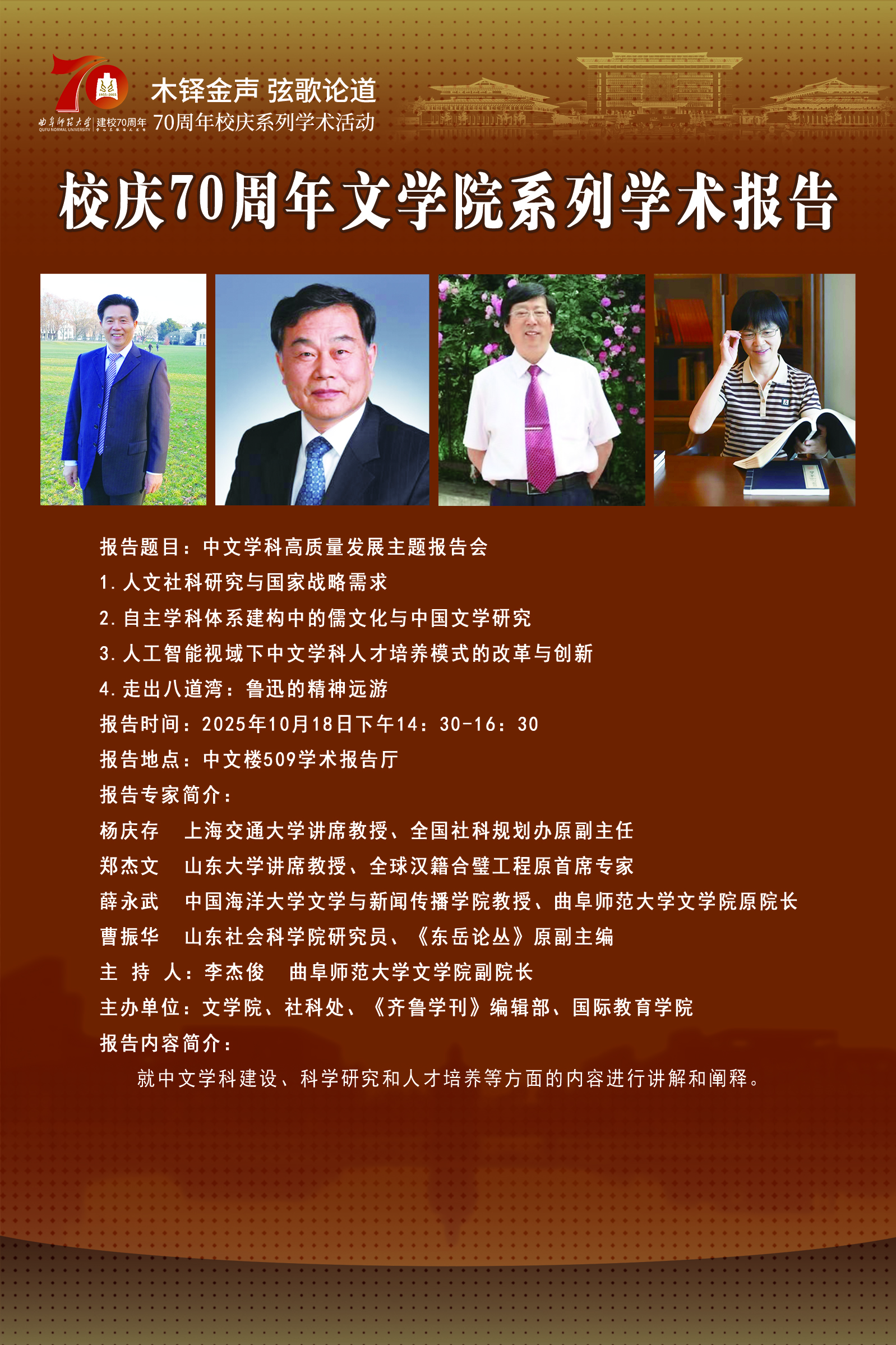 上一条:70周年校庆系列学术报告|语言·文字·文学 下一条:70周年校庆系列学术报告|我与曲阜师大