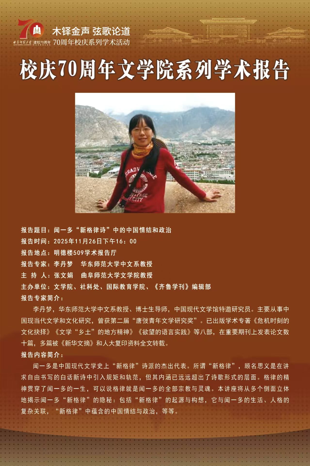 上一条:70周年校庆系列学术报告|人学:文学与心理学——经典精... 下一条:70周年校庆系列学术报告|从谶纬文献入手看上古文化对先...