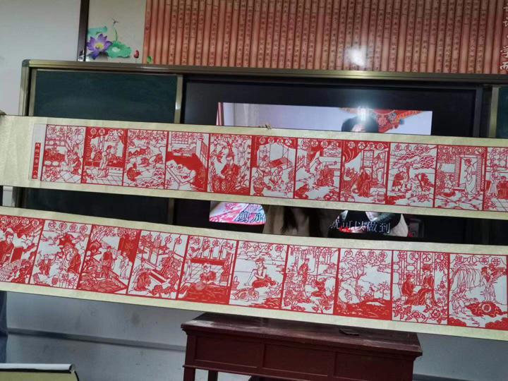 正式开始之前,冯老师为学生们展示大幅的刻纸作品。这些大幅作品获奖无数,让同学们大开眼界。同学们纷纷上前去仔细观察,并真诚的表达了对冯老师的钦佩。