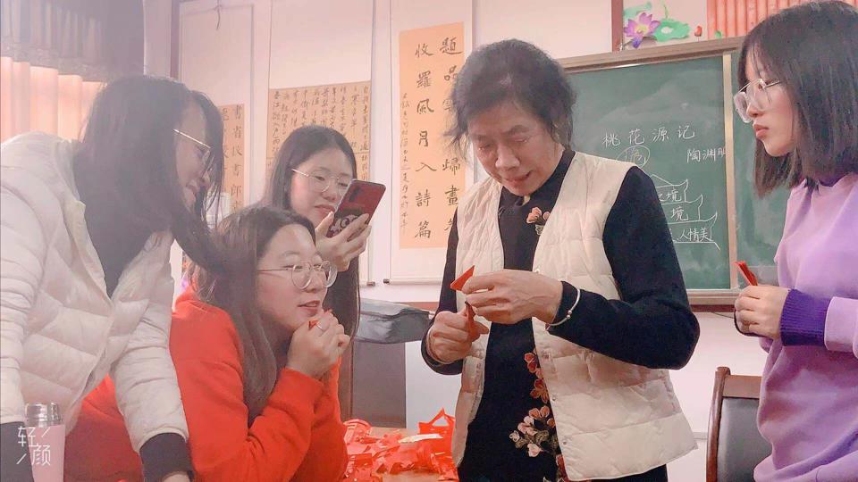 11月21日下午,2019级汉语国际教育硕士专业的学生们在文史楼311教室,跟随民间剪纸刻纸大师冯俊梅老师学习中国传统的剪纸艺术。