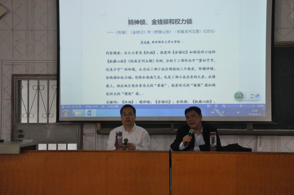讲座中,李杰俊博士以鲁迅的《祝福》、张爱玲的《金锁记》、阎连科的《耙耧山脉》(短篇系列五题)为例,用深入浅出的语言,分析了三部作品中“寡妇守节,还是不守”的命题,认为这三部小说分别指向三个维度,即金钱锁,精神锁和权力锁,通过现身说法将三部作品的女性角色联系起来,逐层深入剖析《祝福》中的祥林嫂和《金锁记》中的曹七巧,指出这两个人物形象的共性与差异,并逐步引出《耙耧山脉》中的村长女人这个角色,它在经典化的过程中与《祝福》、《金锁记》不谋而合。讲述过程中,他还结合《三里湾》、《山乡巨变》等文学著作对其进行深层次的比较,资料详实,逻辑严谨,论点鲜明,见解独到。