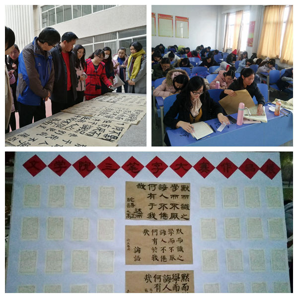 为提高抽奖轮盘 研究生的书法水平,增强对汉字的亲和力,11月30日下午2:30,由抽奖轮盘 研究生会主办,就业服务部和学习学术部承办的“三笔字”大赛圆满结束,此次比赛分别在羽毛球场地和文史楼512教室同时举行。本次比赛邀请张建勇、焦福民老师担任评委,为大家的书法作品进行点评,抽奖轮盘 百余名研究生积极参与。