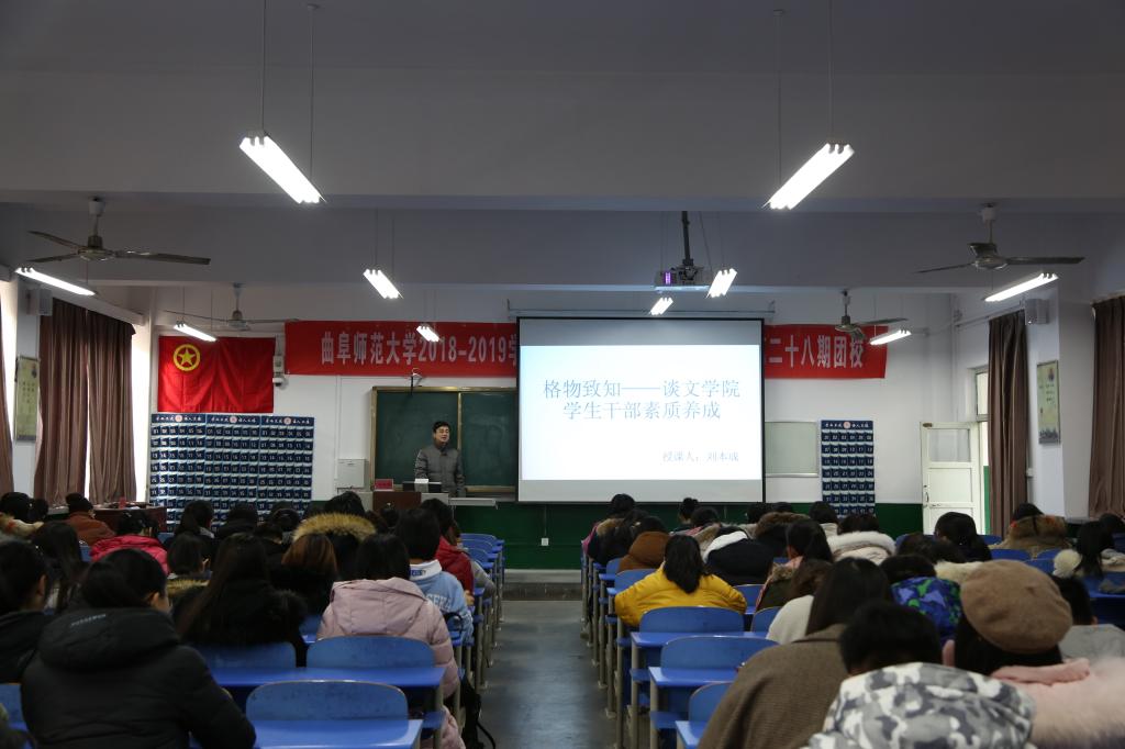 12月15日上午,抽奖轮盘 “青马工程”第三讲于文史楼315教室举行,数学科学抽奖轮盘 党委副书记刘建新以“新时代、新思想、新征程——学习贯彻党的十九大精神”为主题开讲。本次培训由抽奖轮盘 团委书记刘本成主持,抽奖轮盘 学生会部分成员参加。
