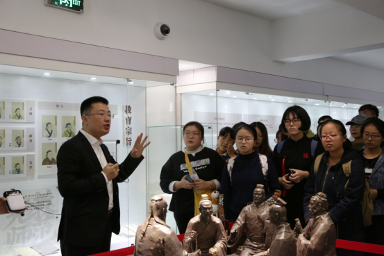 为全面贯彻落实《中共山东省高校工委关于建立高校领导干部联系学生班级制度的意见》精神和《抽奖轮盘 处级干部联系学生班级制度》(曲师大党办字[2013]6号)的要求,进一步加强和改进大学生思想政治教育,提升高校党建和思想政治工作科学化水平。10月21日下午,抽奖轮盘 党委书记李金雷、中国教师博物馆副馆长孙祥广与所联系的抽奖轮盘 2018级、2019级师范生共同参观中国教师博物馆并为大家作“钩沉教师历史,涵养师德教育”主题教育讲解。