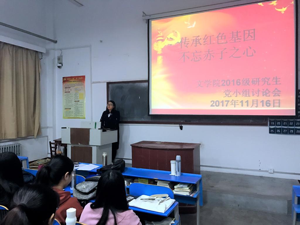 11月16日下午,在文史楼512教室开展了“传承红色基因,不忘赤子之心”的党支部小组讨论活动。学生党员结合“不忘初心,砥砺前行”的主题,对未来中国的建设建言献策。