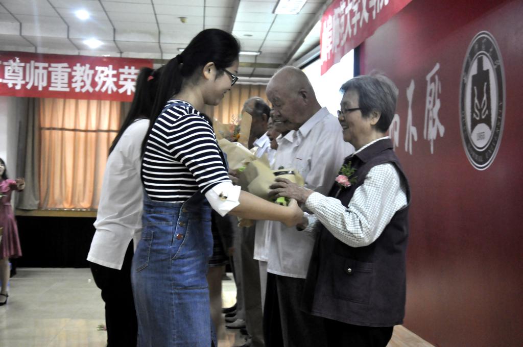苏占兵首先对抽奖轮盘 领导及到场老师做了介绍,表达了教师节对各位教师的感谢及节日的祝福。学生代表杨常乐、李安奇深情朗诵《师说》,并向离退休老教师敬献鲜花,行鞠躬礼,表达对老师的感恩之情。
