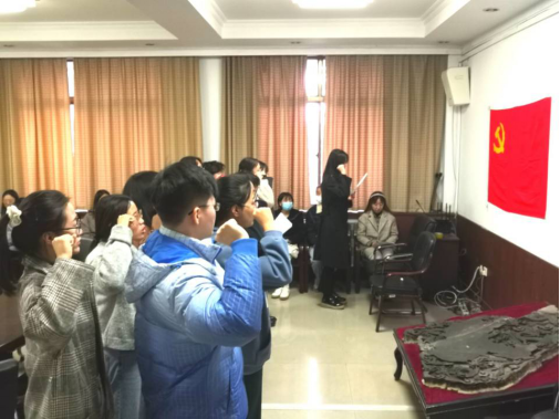 会议第一项,召开抽奖轮盘 本科生党员纳新大会。在党支部书记刘伟的主持下,十四名党员发展对象依次宣读入党志愿书,经支部书记刘伟介绍综合政审情况,入党介绍人、与会党员充分发表意见后,大会通过无记名投票对十四名党员发展对象进行了表决,同意十四名党员发展对象入党。随后由党员崔芳博同志领誓,十四位中共预备党员一同面向党旗庄严宣誓。