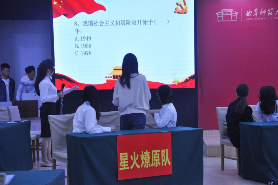 比赛的第二项为个人轮流知识竞赛。此项比赛共分为三轮,每轮每只队伍各派出一名选手作答。此项比赛很好地展示了各位参赛选手对党史知识的掌握程度,同时各位参赛选手的精彩表现也为在场的入党积极分子们树立了榜样。