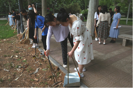 最后,杨景添老师带领毕业生党员们到文史楼楼前做了离校前最后一次志愿义务劳动。在大家的共同努力下,楼前的落叶和垃圾被清理干净,最后一次志愿活动圆满完成。