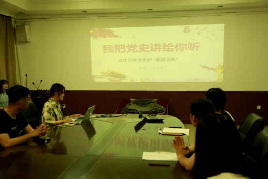 为深入贯彻落实习近平总书记在党史学习教育动员大会上的重要讲话精神,引导广大党员深刻感悟中国共产党百年光辉历程、伟大成就和宝贵经验,在学习领悟中坚定理想信念,在奋发有为中践行初心使命,6月18日下午,抽奖轮盘 研究生党支部和本科生党支部在大会议室共同举办了“我把党史讲给你听”微党课比赛。抽奖轮盘 党委副书记、各学生党支部书记参加并担任评委,部分学生党员观看了比赛。