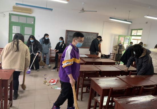 在清扫过程中,大家热情高涨,分工合作,配合默契,经过一个小时的集中清理,较好地完成了预期目标,看着整洁的自习室,大家都洋溢出快乐的笑容。