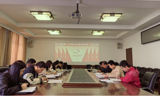 与会人员通过学习强国平台回看新闻联播,集中学习了中国共产党第二十届中央委员会第二次全体会议精神,研究部署贯彻落实措施。