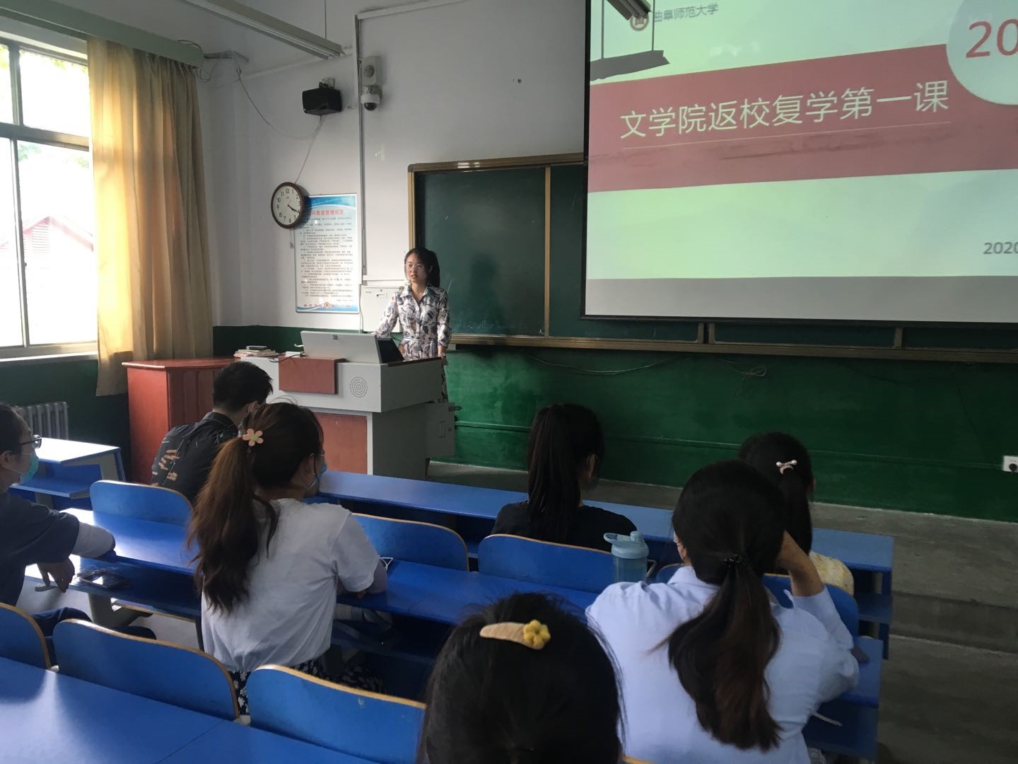 为加强学生返校后的疫情防控工作,开展疫情防控知识教育,提升防控意识、增强防控能力,5月29日下午4时,抽奖轮盘 2020年春季学期“返校复学第一课”在抽奖轮盘 324教室举行,抽奖轮盘 党委副书记曲媛媛、17级辅导员李宝麒以及全体返校本科生共同参加活动。
