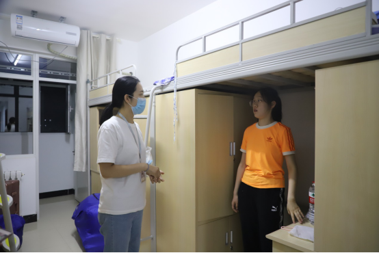 “家住哪里,报到过程顺利吗?住宿条件还满意吗?”在走访过程中,辅导员老师们与新生进行了亲切的交流,细致地询问新生报到情况,耐心地为新生解答各方面的疑惑,针对大家共同关心的集体生活、人际交往、专业学习等方面提出了积极的建议,为新生注入了一剂强心针。同时,辅导员老师们对新生宿舍的环境和设施进行了检查,秉持着“一切为了学生,一切以学生为主”的原则,尽最大努力为同学们营造一个安全舒适的空间,让2020级新生深入体会到老师的关心与爱护。