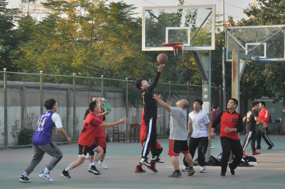 比赛在裁判员清脆的哨声中拉开帷幕,高高抛起的篮球迅速将激情点燃。老师们风采依旧,风姿不减,在上半场比赛中迅速将比分拉大。学生队在教职工队的轮番进攻,严防死守下,临危不乱,及时调整战术,渐入佳境,将比分追平,直至反超。下半场战况愈加激烈,两队比分交替领先,不分上下。在最后一节,经验丰富的教职工队抓住机会,利用学生队的细微失误连续得分,打出一波进攻高潮,迅速将比分追平并反超。最终,比分定格在了58:53,教职工队以五分的优势赢得本次比赛。