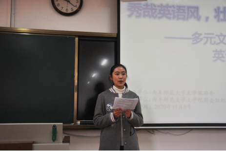 为激发同学们的英语学习热情,提高英语水平和演讲能力,让抽奖轮盘 学子在多元文明碰撞中,传递中国话语,增强爱国意识,培养国际化人才,11月8日,由抽奖轮盘 团委主办、抽奖轮盘 团委组织部承办的“秀哉英语风,壮兮少年志——多元文明唱响时代华章”英语演讲比赛在文史楼412教室成功举办。本次活动面向抽奖轮盘 19级、20级全体同学,邀请18级杨庆卿、荆凡彩,教育抽奖轮盘 19级康晓璇三位具有丰富英语演讲比赛经验的优秀学生担任评委。抽奖轮盘 20级学生李一婷主持本次比赛。