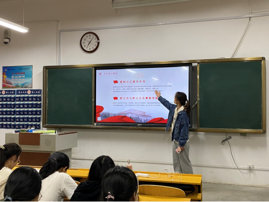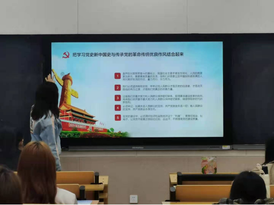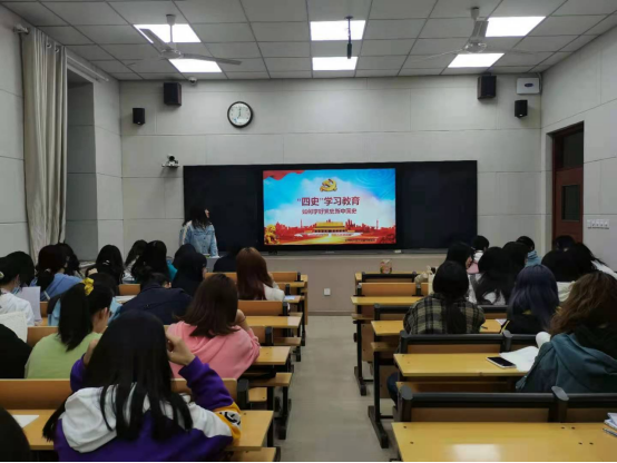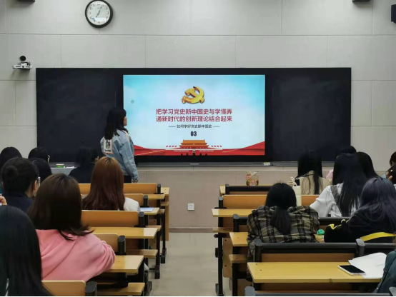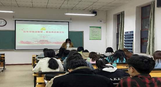 鉴往以知来,循道以致远。首先,全体同学观看了党史纪录片。团干部轮流上台发表主题演讲,分享心得体悟。作为新时代青年,同学们要学会历史思维、培养历史眼光、增强历史担当,传承红色基因、坚定理想信念,增强“四个意识”、坚定“四个自信”、做到“两个维护”。