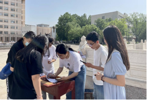 上午8时30分,在本次活动的起点——西联一教室外,随着裁判员一声令下,紧张而又激烈的闯关答题比赛正式开始。本次比赛沿途设置西联五、文史楼、孔子文化广场三个关卡,分别考验参赛选手红色诗词、党史知识、红歌识曲的知识储备。比赛包含闯关与答题两项比拼较量,以考验选手的综合实力。比赛中,各位参赛选手一路过关斩将,奋力奔跑,争分夺秒,在到达终点线前依然不相上下,绝境反超的精彩瞬间轮番上演。同时,在比赛过程中参赛选手们相互鼓励,体现出友谊第一、比赛第二的良好竞技风尚,充分地展现出当代大学生积极进取的拼搏姿态和沉着大气的精神风貌。比赛结束后,组织部成员在孔子像前为参赛选手们打卡拍照留念,同学们也纷纷表达了对党百年华诞的美好祝愿。