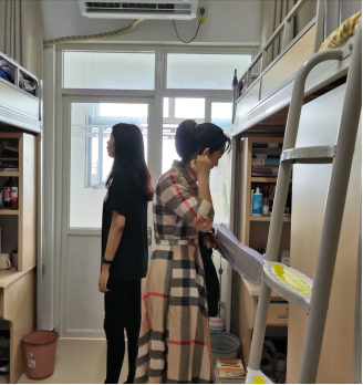 在检查校内二号宿舍时,2020级辅导员肖黎老师帮助学生打开宿舍门窗通风,同时指出:宿舍用电安全重于泰山,同学们一定严肃对待,严禁吹风机等大功率用电器的使用,杜绝违规用电现象。检查过程中,结合当下疫情防控背景,张乾坤老师叮嘱学生们要加强安全防范和卫生意识,疫情期间勤洗手,注意开窗通风,保持宿舍空气流通,合力营造一个安全、健康、舒适的学习和生活环境。学生们认真聆听老师叮嘱,谨记防控要求,积极做好宿舍安全维护工作。