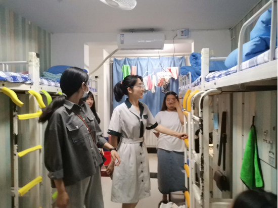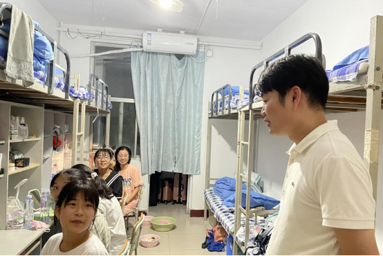 在走访过程中,辅导员老师首先对同学们致以亲切的问候,接着辅导员老师们与新生进行热情的交流:“家是省内的还是省外的?”“报到过程顺利吗?”“住宿条件还满意吗?”,老师们细致地询问新生报到情况和对新环境的适应程度,并对新生宿舍的环境和设施进行了检查,详细询问宿舍内用具是否完好,叮嘱同学们及时报修。同时,辅导员老师特别强调不要在宿舍内使用大功率电器,注意用电安全,并叮嘱同学们注意个人卫生和健康状况,保持健康的生活作息和良好的生活习惯,为即将开始的军训做好准备。