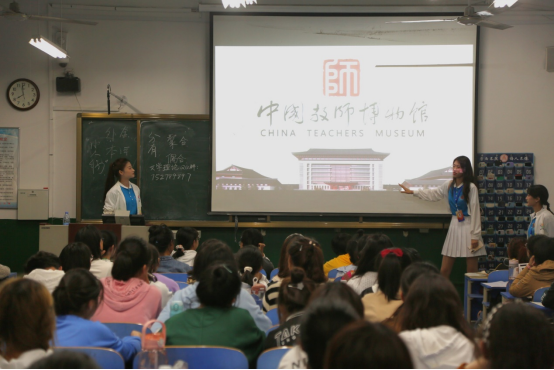 而李一婷和刘欣蕾就教师博物馆的组织简介、日常工作以及团队组建进行详细说明,并向同学们全面介绍了教师博物馆“追溯教师教书育人初心,传达教书育人崇高”的活动宗旨以及活动实践的组织、宣传事项;米颖和王葆嘉从“活动介绍、如何开展、温馨提示”三个方面,通过精美的PPT音频,向同学们展示了教师博物馆的发展历程、成果展示和各种活动的精彩瞬间,对教师博物馆各部门形式新颖、主题鲜明的特色活动进行详细介绍。宣讲过程中,同学们积极配合,展现出抽奖轮盘 学子的参与热情。精彩的活动照片与视频吸引了同学们的目光,也使得同学们对志愿服务工作有了初步认识。以便更好地参与文化实践活动。