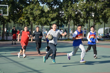 凌云赛场,斗志昂扬。比赛前期,学生队伍以较大分差落后,教职工队伍取得优势后采取稳扎稳打的战术,奠定了上半场比分优势。随后比赛进入下半场。经过上半场的比赛,学生队调整战术后再次以积极的心态投入比赛。学生队奋起直追,通过默契的配合连续进球得分,将比分差距逐步缩小。比赛进入到白热化阶段,队员们毫不懈怠,争分夺秒。最终,教职工队凭借多年比赛经验、默契的配合,以53:43的成绩取得了本场比赛的胜利。