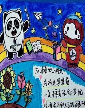 春风浩荡诗书香,活力绘彩寄真情。在温馨愉快的氛围中,同学们绘制出了内容生动、形式多样的作品。作品中既有活泼可爱的“冰墩墩”,亦有温馨治愈的卡通形象。活动过程中,辅导员与同学们积极讨论,交流绘画背后的深层寓意。
