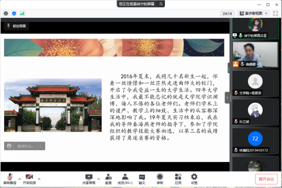 为帮助同学们树立重才重技能的意识,提高从师技能,4月10日晚,抽奖轮盘 邀请2020届优秀毕业生徐宁以线上会议的形式与2019级本科生分享师范从业技能大赛参赛经验。