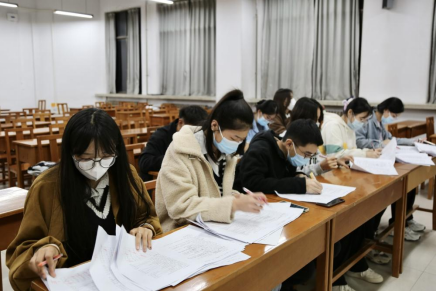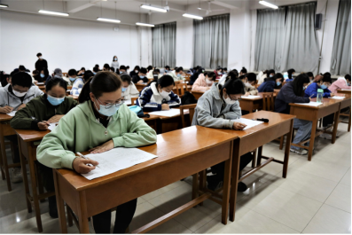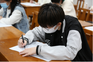 比赛过程坚持贯彻疫情防控原则,监考人员引导参赛选手间隔就坐、佩戴口罩进行答题。同时,为保证比赛的公平性,监考人员统一收取参赛选手的手机等电子设备,维护良好的赛场秩序。答题过程中,参赛选手们专心致志,奋笔疾书,最终全部完成作答。