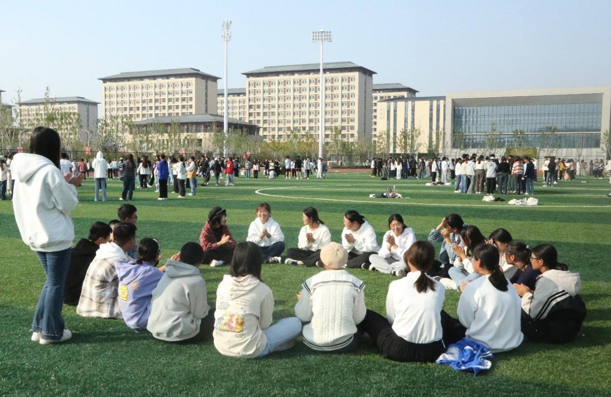 活动开始前,心理健康部部员按实际情况将抽奖轮盘 2023级新生平均分为25个小组,并配以对应数量的心理健康部团辅志愿者,确保活动顺利进行。活动过程中,志愿者们分别带领各自小组分散到操场各处,进行心理健康小游戏。首先开展的是考验文字运用能力的“逐字增加”游戏,每一名同学的填字都会让这个句子变换新的含义,“逐字增加”游戏在欢声笑语中拉近了同学们之间的距离,也成功活跃了团辅活动的气氛。接着,志愿者带领同学们进行挑战肢体和思维灵活性的“说做相反”小游戏,在志愿者的指令下,同学们的反应速度逐渐增快,能够快速地做出与指令不相符的动作。在凸显团队协作能力的“包饺子”活动中,同学们逐渐丢掉了彼此的陌生感,和身旁的同学说说笑笑,获得了许多欢乐。此次团辅活动游戏别有风趣,操场上欢声笑语。