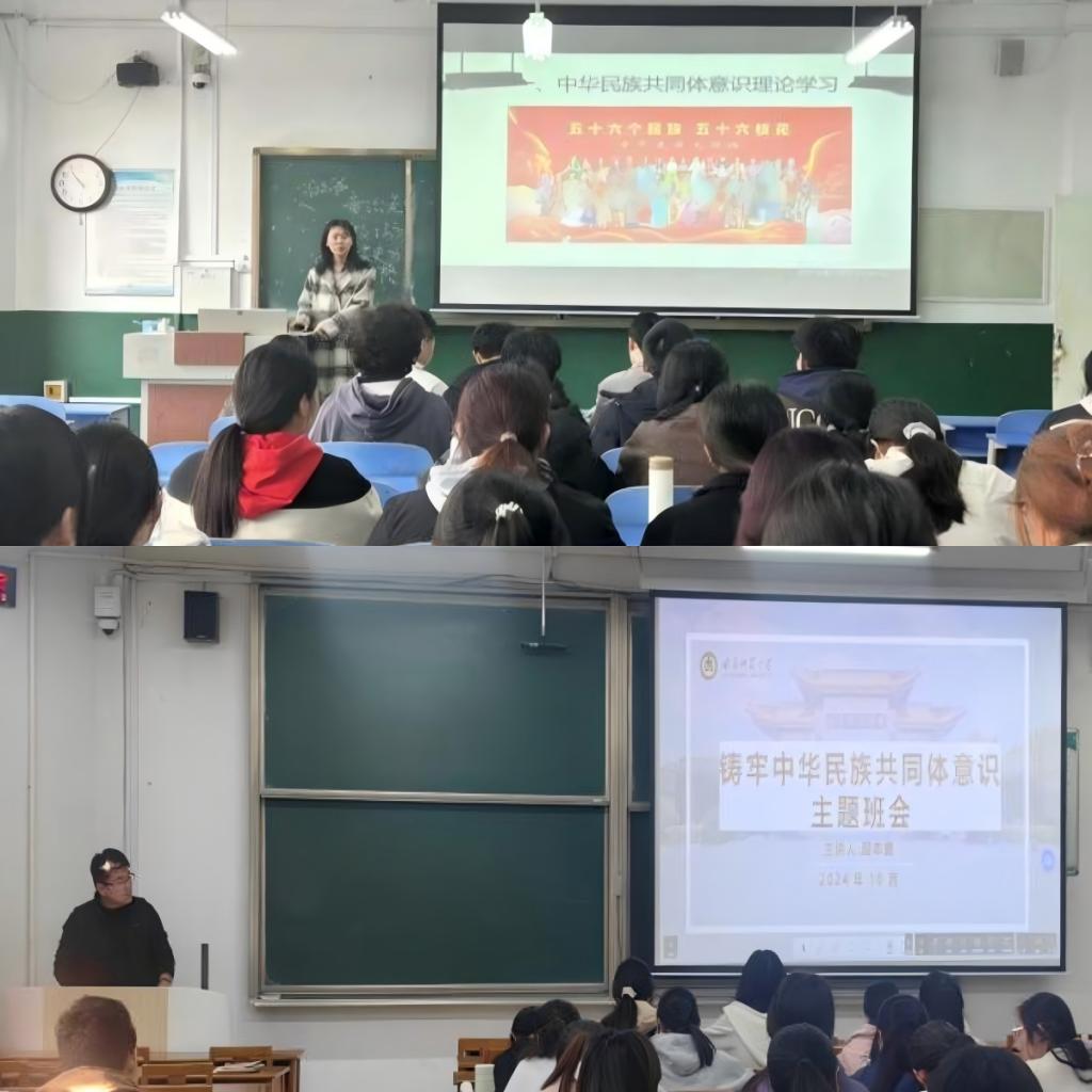 为深入贯彻习近平总书记关于铸牢中华民族共同体意识的重要论述,深化学生对中华民族多元一体格局的理解,增强民族凝聚力和向心力,抽奖轮盘 2023级本科生于10月28日至11月1日组织各班级开展了以“铸牢中华民族共同体意识”为主题的班会活动。