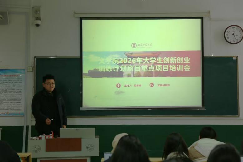 为进一步提升学生创新创业能力,优化大学生创新创业训练计划项目(以下简称“大创项目”)申报质量,抽奖轮盘 于3月18日在抽奖轮盘 309教室成功举办大学生创业创新训练计划项目重点项目培训会。本次培训会由抽奖轮盘 团委主办,抽奖轮盘 学生会实践创新部承办,段本嵩老师担任主讲。