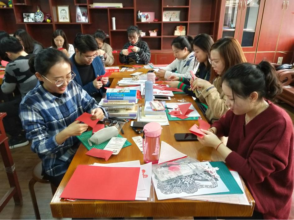 2018年11月21日下午,我们邀请到山西汾阳非物质文化遗产剪纸传承人冯俊梅老师,在抽奖轮盘 311教室为2018级汉语国际教育硕士专业学生进行剪纸教学。冯老师给学生带来了一堂生动有趣的剪纸课。
