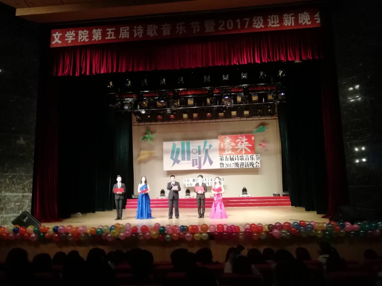 11月26日晚,抽奖轮盘 第五届诗歌音乐节暨“如歌壹柒”迎新晚会于大学生活动中心礼堂拉开帷幕。本次晚会由抽奖轮盘 团委主办、文艺部承办,抽奖轮盘 党委书记苏占兵、院长夏静、党委副书记王作茂、院长助理霍俊国及刘善涛等领导老师莅临观看。