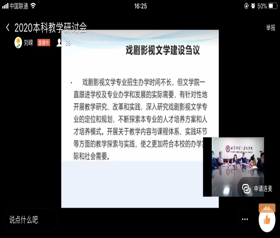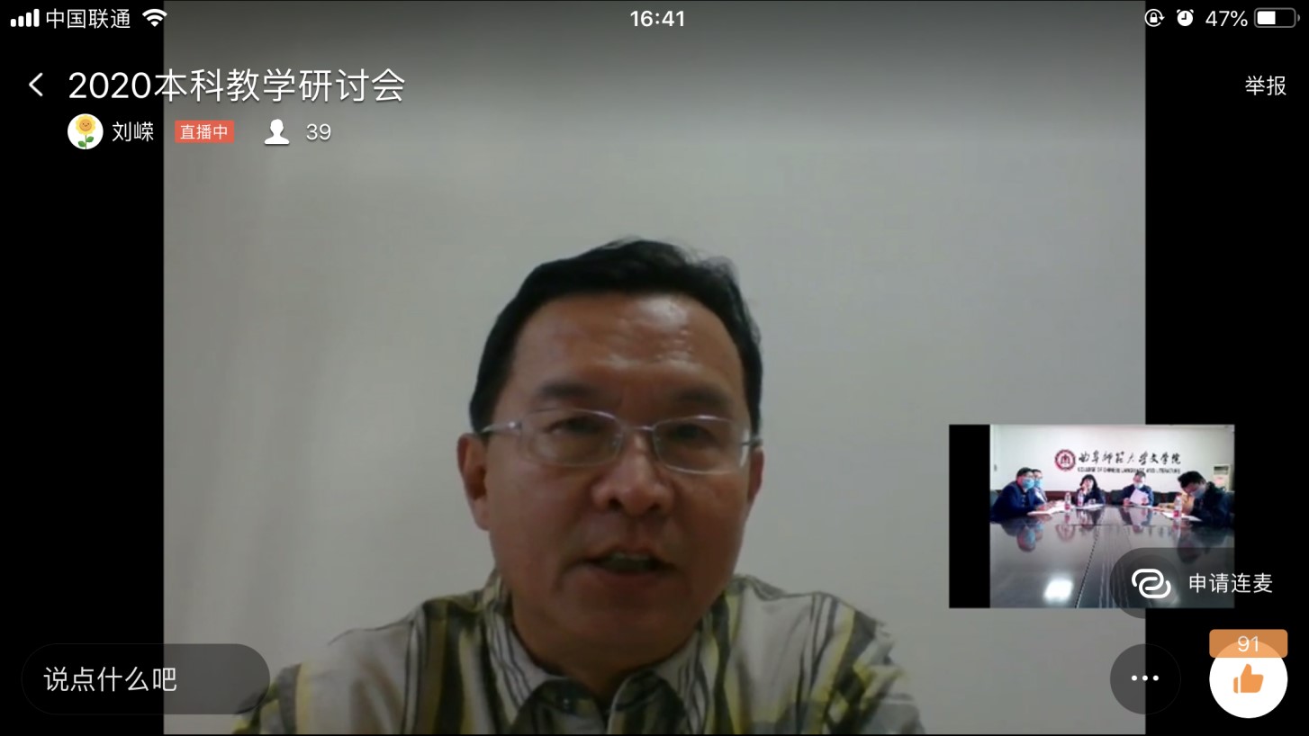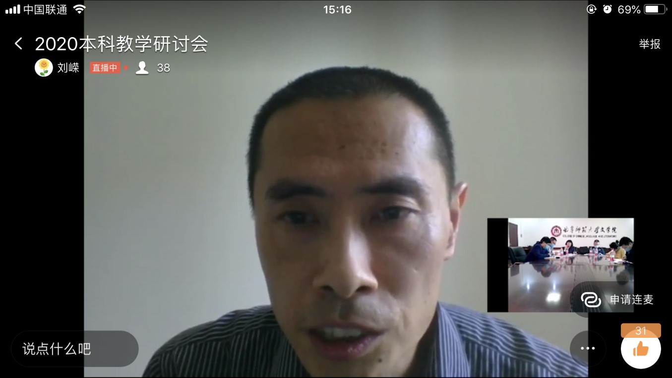 2020年5月10日下午,抽奖轮盘 召开主题为“守正开新 争创一流”的本科教学线上研讨会议。抽奖轮盘 教务处副处长朱献贞博士、抽奖轮盘 教学督导、教学委员会委员、各教研室负责人、一线教师和抽奖轮盘 班子成员参加了此次会议。