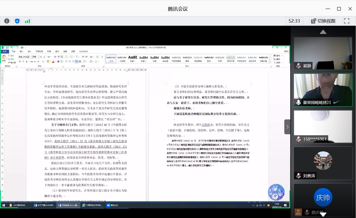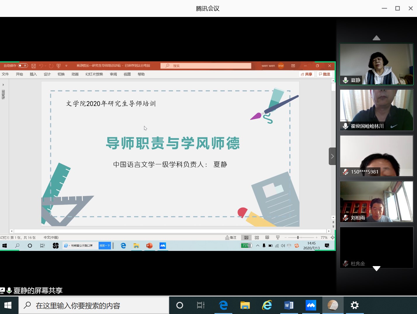 为进一步提高研究生导师指导能力、保证研究生培养质量,根据抽奖轮盘 决定和要求,7月13日下午,抽奖轮盘 举办了2020年研究生导师线上培训会,全体研究生导师参加了此次会议。会议由院长助理霍俊国副教授主持。
