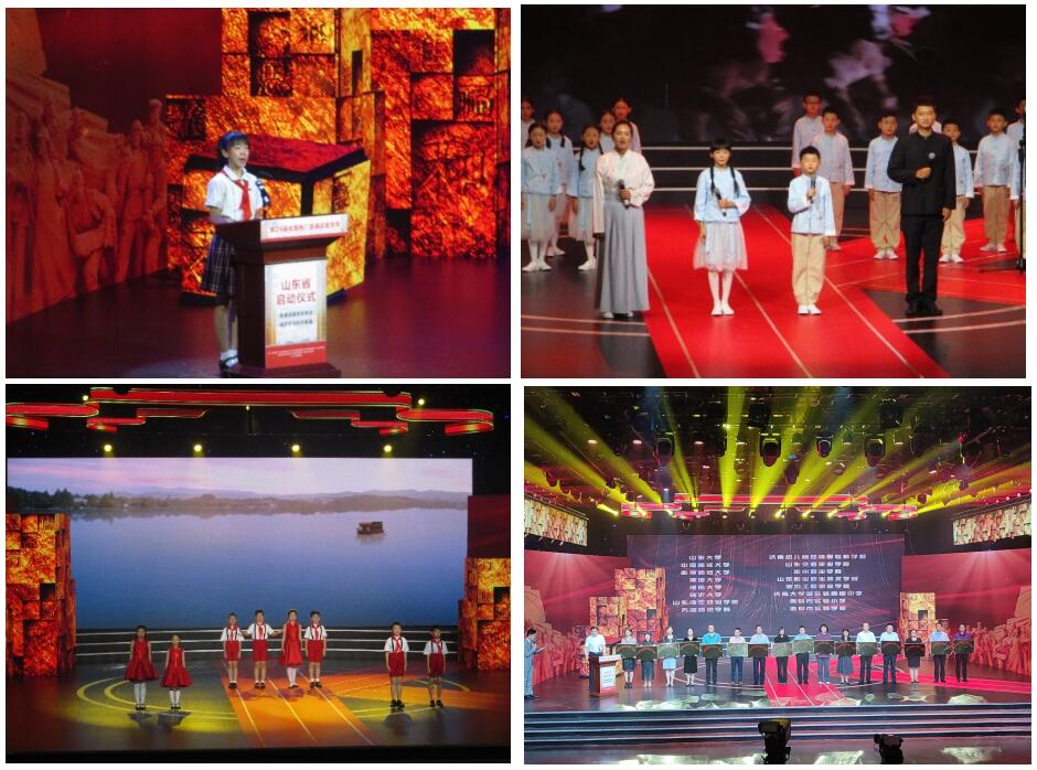 启动仪式上,学生代表宣读《山东省第24届推广普通话宣传周倡议书》,进行了中华经典诵读节目表演,并通过视频连线济南市市中区望岳路小学、鲁东大学国家语言文字推广基地、青岛市城阳区城阳街道东田社区等基层活动现场,多角度展示了全省推普工作的丰硕成果。最后,荆戈为首批山东省语言文字推广基地授牌,共有16家单位获得山东省语言文字推广基地称号。