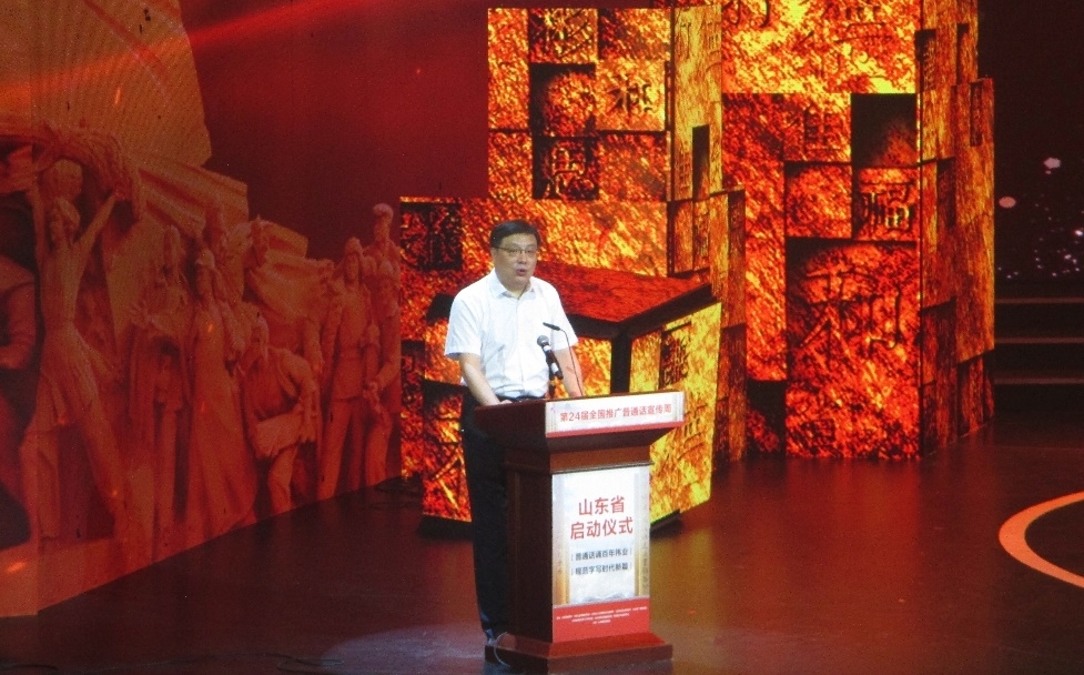 9月12日至9月18日是第24届全国推广普通话宣传周,本届推普周的主题是“普通话诵百年伟业 规范字写时代新篇”。山东省教育厅二级巡视员荆戈在讲话中指出,当前,全省正按照习近平总书记“走在前列、全面开创”的指示要求,奋力谱写新时代现代化强省建设壮丽篇章。我们要在新时代“大语言文字工作”格局下,遵循语言文字发展规律,树立科学语言文字观,着力实施“童语同音·学前学会普通话”行动、“职业技能+普通话”教育和规范书写汉字等三大工程,深入挖掘我省语言文字独具的文化内涵,传承、弘扬发展中华优秀文化,推动我省语言文字事业再上一个新台阶,为新时代语言文化强省建设做出新的更大贡献。
