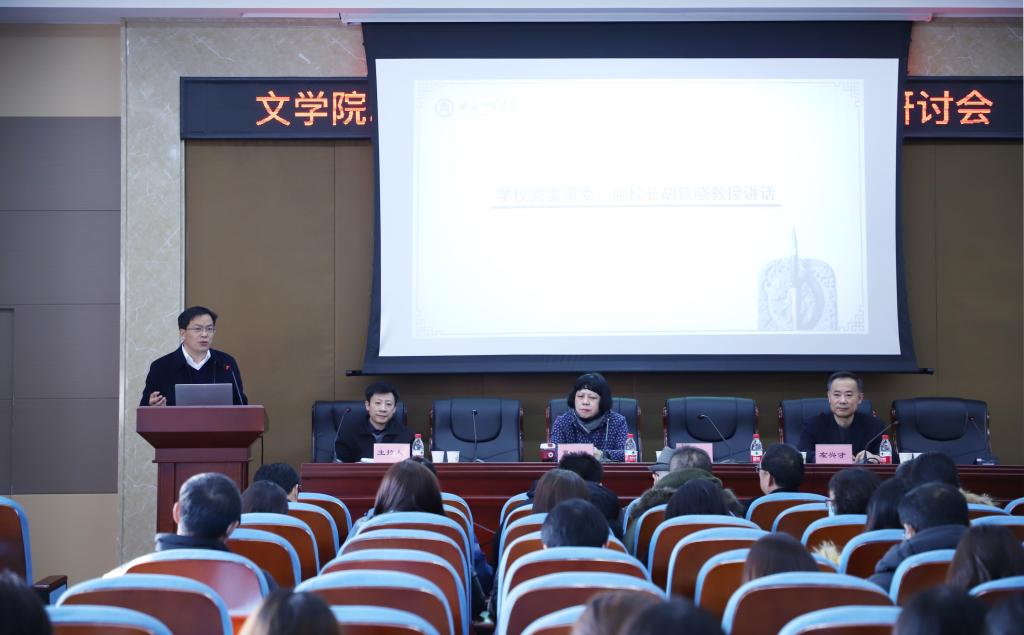 2021年11月24日下午,抽奖轮盘 在文史楼509学术报告厅召开主题为“新文科 新理念 新起点”的本科教学研讨会。抽奖轮盘 党委常委、副校长胡钦晓教授、抽奖轮盘 各教研室主任、一线专业教师、抽奖轮盘 领导班子成员和学生代表参加了此次会议。此次教学研讨会由抽奖轮盘 副院长杨新刚教授主持。