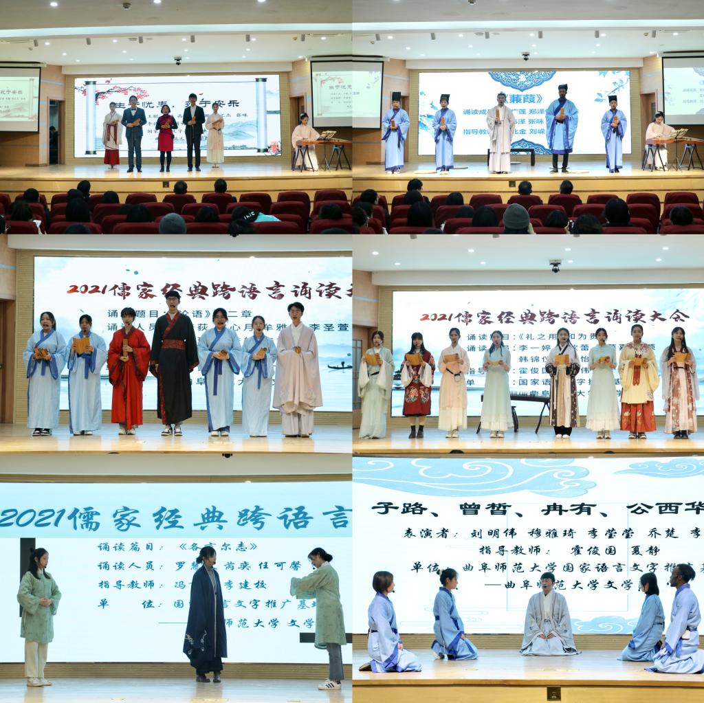 为更好推崇中华文化,向世界展示中国特色、体现中国精神、蕴含中国智慧的优秀儒家文化,2021年12月22日下午,抽奖轮盘 国家语言文字推广基地和抽奖轮盘 联合在孔子会堂成功举办“2021儒家经典跨语言诵读大赛”获奖作品展演。抽奖轮盘 团委书记孔轶众、抽奖轮盘 党委书记左兴才以及各组指导教师和抽奖轮盘 各年级本科生观看了此次展演。本次活动由高原老师和王聪博士主持。