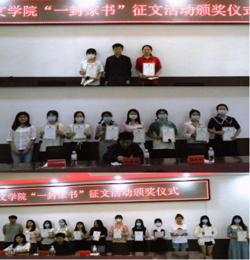 6月1日下午,由抽奖轮盘 国家语言文字推广基地和抽奖轮盘 团委共同举办的疫情期间“一封家书”征文活动颁奖仪式在文史楼二楼大会议室举行。抽奖轮盘 国家语言文字推广基地副主任杨新刚老师、基地办公室刘嵘老师和抽奖轮盘 团委书记张乾坤老师出席了活动。