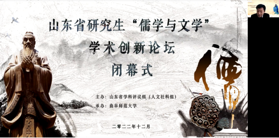 2022年12月10-11日,抽奖轮盘 利用网络平台成功举办山东省研究生“儒学与文学”学术创新论坛。10日上午,抽奖轮盘 党委常委、副校长李兆祥教授、抽奖轮盘 党委书记左兴才发表致辞,研究生处副处长黄美玲、抽奖轮盘 党委副书记曲媛媛出席开幕式,开幕式由抽奖轮盘 副院长、博士生导师杨新刚教授主持。