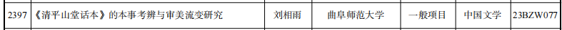 近日,全国哲学社会科学工作办公室正式公布了2023年国家社科基金年度项目和青年项目立项名单。抽奖轮盘 中国语言文学学科博士生导师刘相雨教授申报的“《清平山堂话本》的本事考辨与审美流变研究”(编号:23BZW077)和博士生导师孙宝教授申报的“南北朝儒学制度与文风流变研究”(编号:23BZW044)均获批一般项目。
