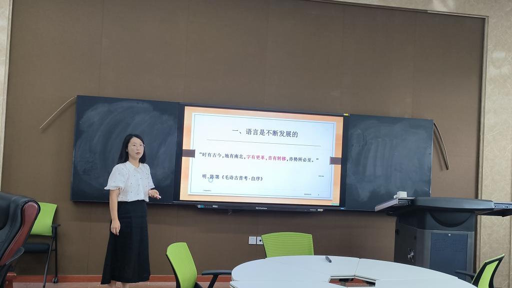 来自应用语言学教研室的李相霖老师讲授的题目是《语言演变的原因与特点》,她向大家讲述了语言的演变可以从词汇词义、语音、语法三个方面体现出来。在整个讲课过程中,教学目标明确、思路清晰,准确把握课程的重点和难点,针对性强。注重学术性,内容充实,渗透专业思想,为教学目标服务。重点突出,条理清楚,内容呈现具有清晰的逻辑层次,循序渐进。启发性强,能有效调动学生思维和学习积极性。语言清晰、流畅,语速节奏恰当。