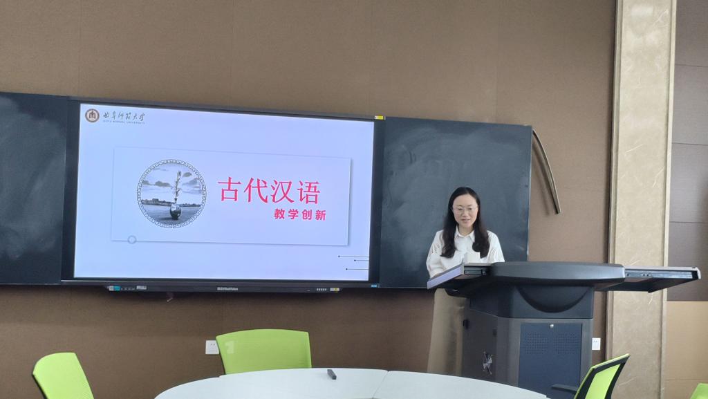 参加抽奖轮盘 第五届创新赛的王翰颖老师,就《古代汉语》在教学创新方面做了较为精要的汇报。