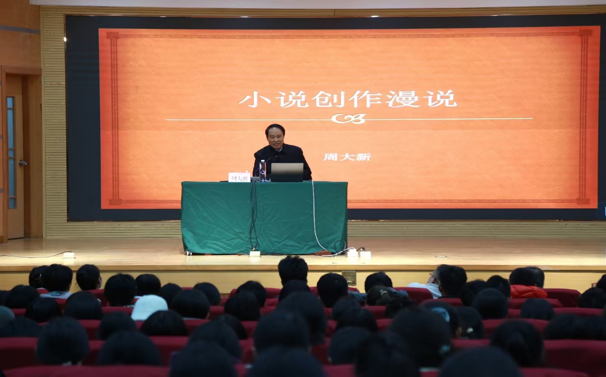 在《小说创作漫谈》的报告中,周大新指出:小说创作最好根据自己的生活积累和兴趣来选定小说题材;根据自己的年龄和偏爱来确定要写的人物;依托自己的心理和生理体验去编织故事;以陌生化作为选择叙述方式的标准;以有新的思想发现作为小说创作的最高追求。