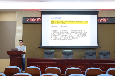 孙刚博士主要从攻读研究生学位如何突破困境与瓶颈的角度分享了自我的感受与体会。关于如何阅读文献。孙刚博士首先与各位研究生讨论了目前存在的普遍“不读书”、“不会读书”的问题。然后他着重强调了读书对学术素养的提升有很大意义,鼓励学生们要努力排除通讯工具的干扰去用心读书。“问题、思路、观点和结论都从原始文献中来。”孙刚博士提出阅读原始文献的重要性。其次,孙刚博士提醒学生在读书时要有敏感度,在细处发现问题。最后,他认为在进行作品解读时要有内行眼光,要做内行的研究。